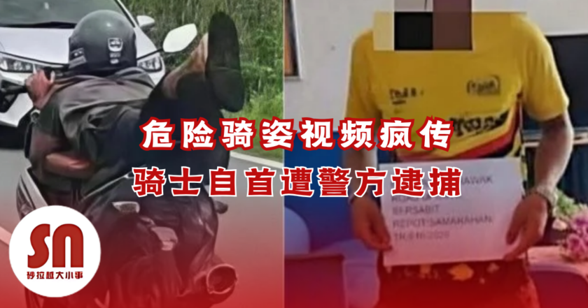 【砂事】公路上演“超人骑姿” 28岁骑士落网调查 一名男子在公路上以“超人”姿势骑摩托车的危险行...