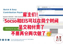 阅读全文7月22日起SOCSO和EIS可以一起呈交及付款了!无需分两次呈交