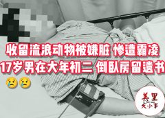 【#大马事】 #收留流浪狗 #竟遭 #学生排挤霸凌! 据独立动物拯救组织(ALIR)揭露,一名17岁男生因照顾流浪狗而被同学排挤霸凌,在大年初二被发现倒卧房内并留下遗书,所幸最终抢…