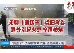 阅读全文无聊「熊孩子」烧就考卷 意外引起火患 烧毁家具!