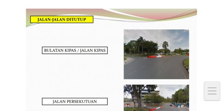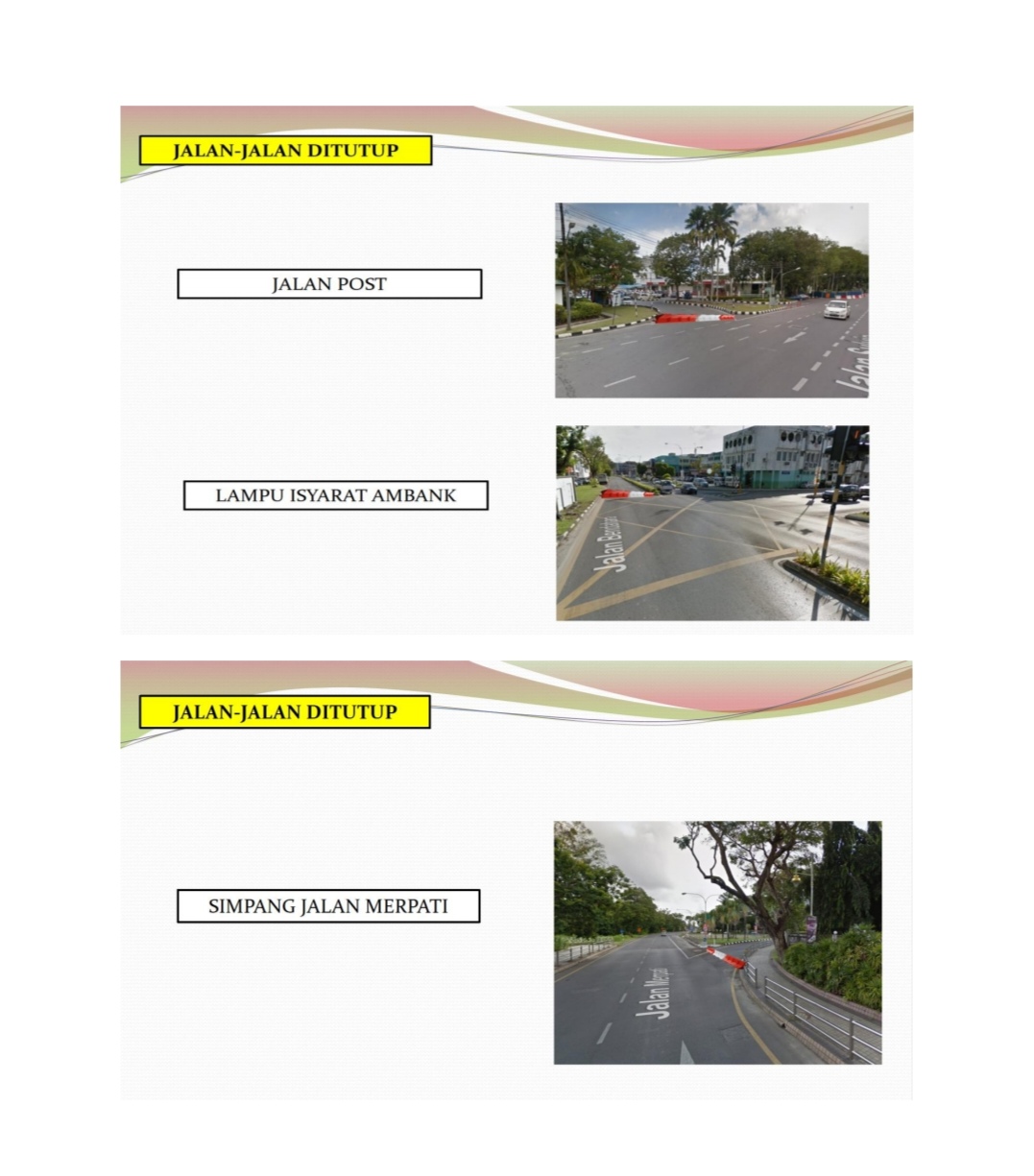 将被关闭的道路有Bulatan Kipas/Jalan Kipas、Simpang Jalan Merpati、Jalan Persekutuan/Jalan Sylvia、Jalan Post/Jalan Sylvia及lampu Isyarat Ambank。