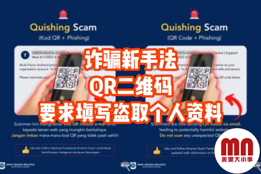 诈骗新手法 别扫描可疑二维码 2023年12月22日2023年12月22日 H编 【#大马事】#诈骗新手法 #国家银行呼吁提防 #二维码 #网路钓鱼诈骗 国家银行日前透过属下“Amaran Scam”脸书专页宣布,二维码网络钓鱼(Quishing)是最新的诈骗手法,提醒民众要注意防范。 贴文指出,二维码网络钓鱼是指诈骗分子透过二维码,诱骗民众填写及提供个人资料,以此窃取资料。诈骗分子目前在可疑电邮或网页中使用二维码,诱骗民众填写及提供个人资料。国家银行促请民众时刻提高警惕,在确定二维码的真实性之前,切勿扫描该二维码。 Post Views: 93