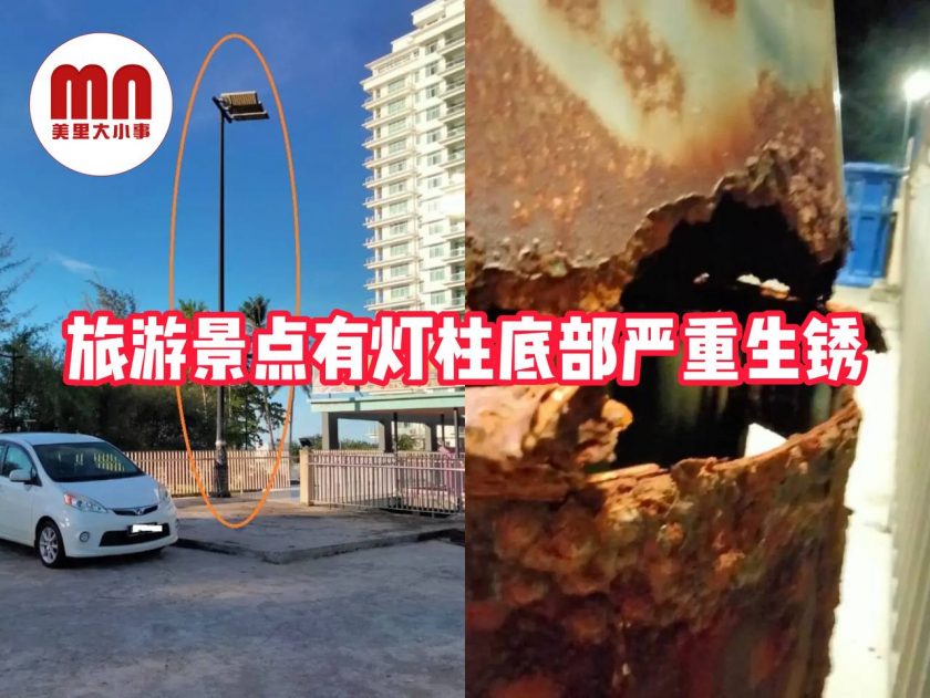 旅游景点有灯柱底部严重生锈 2023年12月30日2023年12月30日 nee编 【#美里事】#舍勒拉公园 #电灯柱底 #海风 #侵蚀 丹绒罗邦海滩的舍勒拉公园里,有一支位于饮食小贩中心的电灯柱底部出现严重生锈腐蚀的现象。 有民众表示,若柱子倒下,砸中车辆甚至民众,后果将不堪设想,而且美里旅游城将蒙上污点。 新闻credit:诗华日报 #危险啊 #威胁安全 Post Views: 87