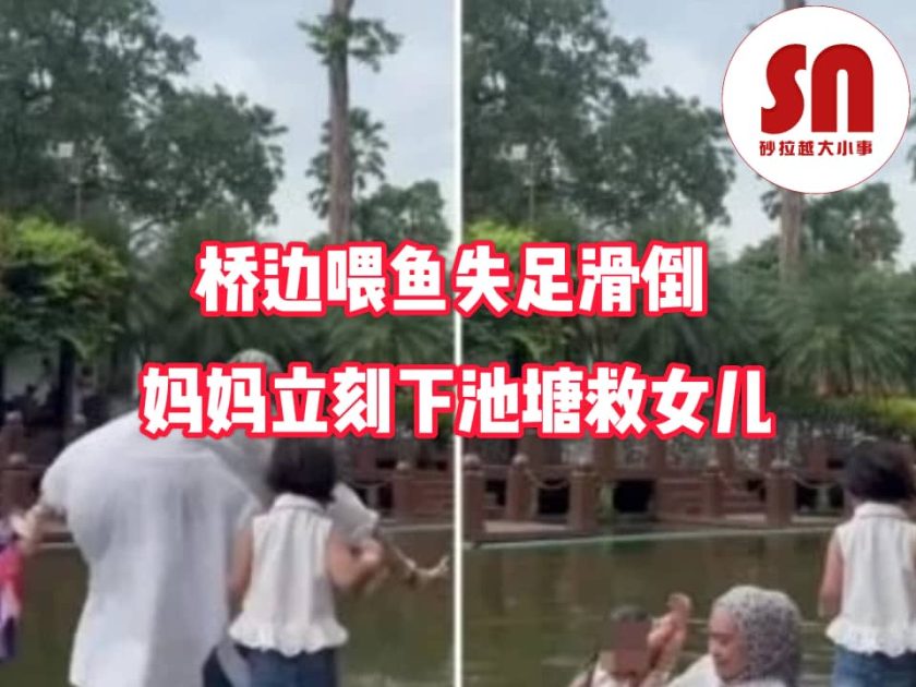 桥边喂鱼失足滑倒 妈妈立刻下池塘救女儿 2024年4月27日2024年4月27日 X编 【#大马事】#河边 #公园 #游玩近日一名巫裔母亲带两个女儿到公园游玩。母亲买了面包让女儿在池塘边喂鱼,不料其中一个女儿滑倒跌入河中,母亲当下立刻救出女儿。网民表示庆幸池塘水位不太深,母亲及时救出女儿。 新闻来源:星洲日报 #不幸中的万幸 #你去公园游玩吗 #母爱的伟大 Post Views: 97