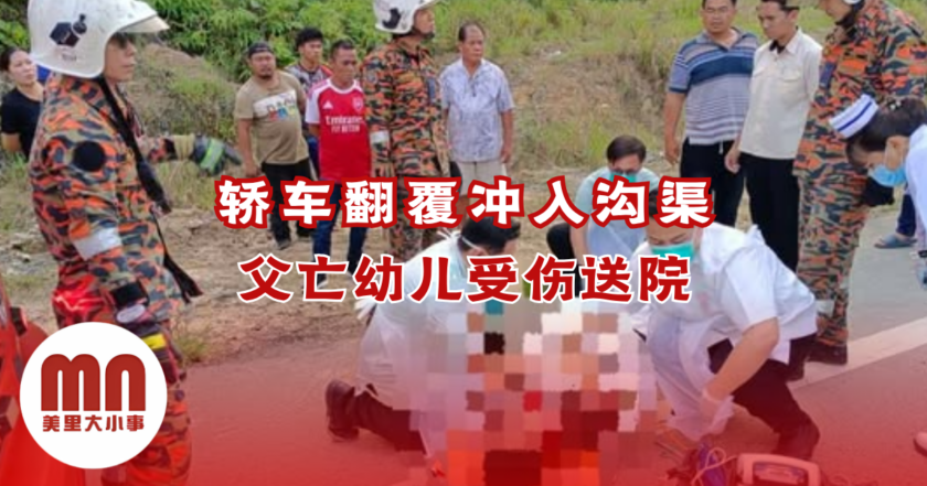泛婆大道美里往民都鲁路段靠近马鲁帝路口昨天下午发生一起自撞翻车事故,一名男子当场身亡,其5岁儿子受伤送院