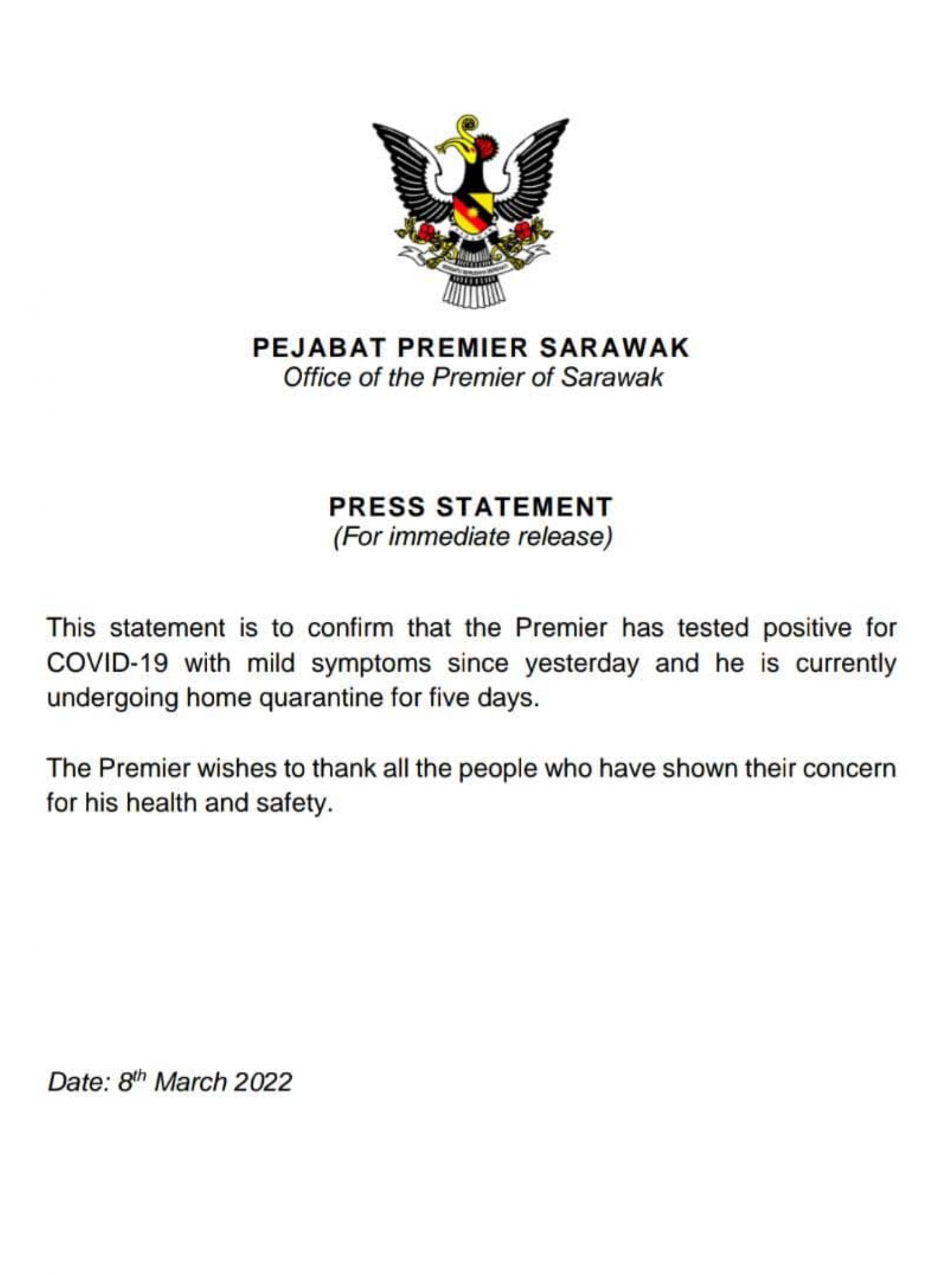 砂总理确诊 2022年3月8日2022年3月8日 藤编 【#砂事】#砂总理 #阿邦佐哈里 #确诊砂拉越总理拿督巴丁宜阿邦佐哈里也感染新冠肺炎。砂妇女、儿童与社区福祉发展部部长拿督法蒂玛陈赛明今早出席活动时透露了这消息。总理署随后也发布了文告,证实总理昨天确诊并自昨天开始出现轻微症状,将居家隔离5天。文告截图 >> #病毒无处不在 #愿早日康复 Post Views: 76