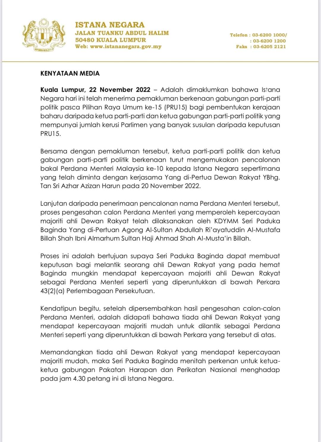 最高元首 召见 安华 慕尤丁 2022年11月22日2022年11月22日 L编 【#大马事】#最高元首 #召见 #安华 #慕尤丁 由于到目前没有任何一个政治联盟有简单多数,因此国家皇宫发布最新文告,最高元首召见希盟领袖安华及国盟领袖慕尤丁最高元首吁请人民耐心等待新政府的成立。 #等了又等 #什么时候有结果 Post Views: 185