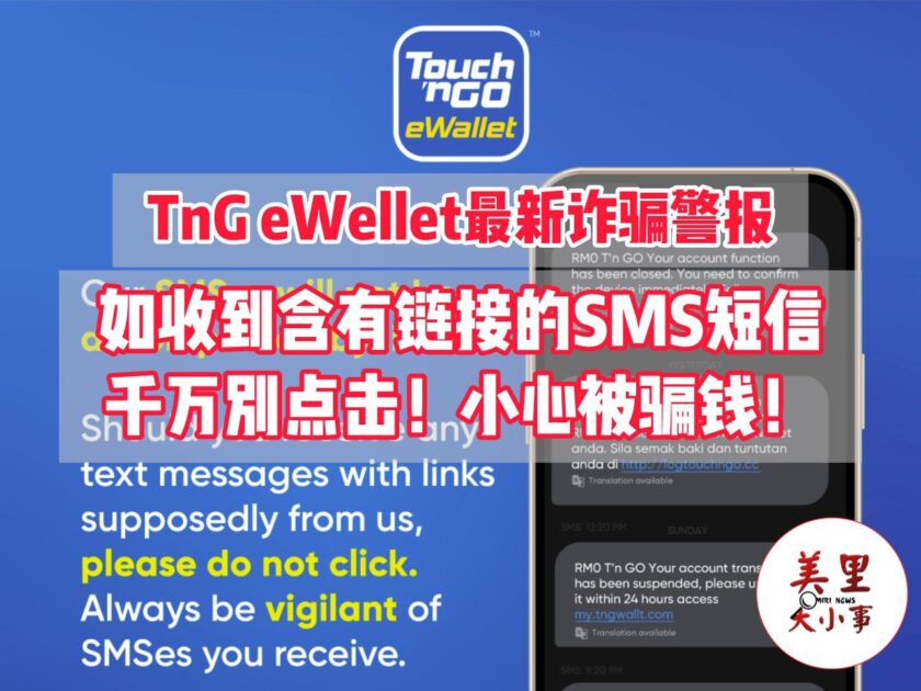 若有收到类似以上的SMS,千万别点击链接,TNG eWallet 官方也表示不会在SMS 里附上任何可点击的链接,民众受促提高警惕。