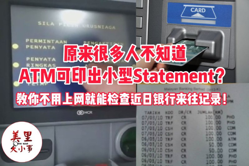 【#小知识】 #不会才知道吧? #ATM也可印出近日银行来往记录