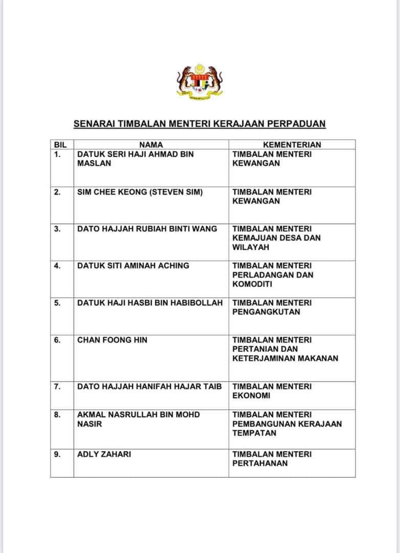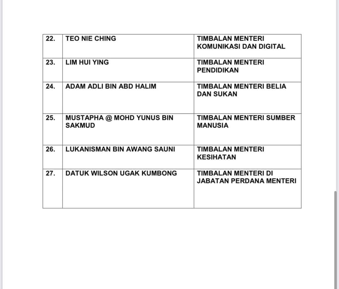 副部长名单正式出炉 2022年12月9日2022年12月9日 T编 【#大马事】#副部长 #名单 #正式出炉 就在晚上8:15分我国首相拿督斯里安华发布了副部长人选。27名副部长人选已确定。 以下是副部长人选的名单。 #愿马来西亚越来越好 Post Views: 115
