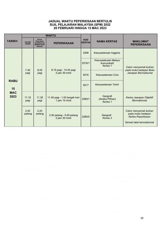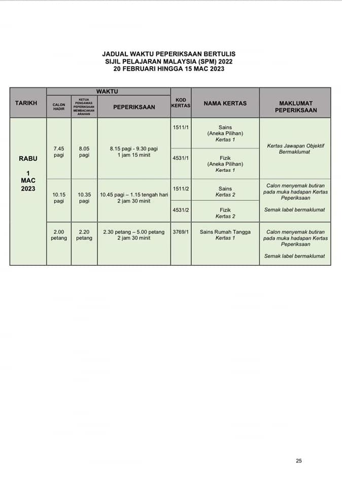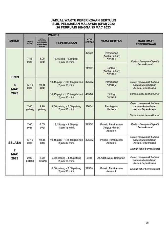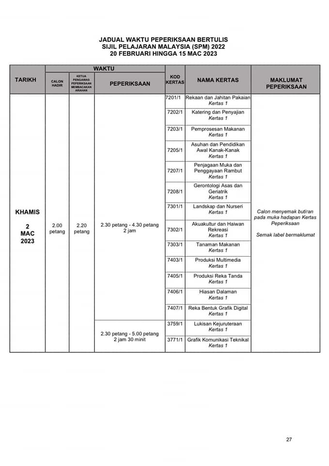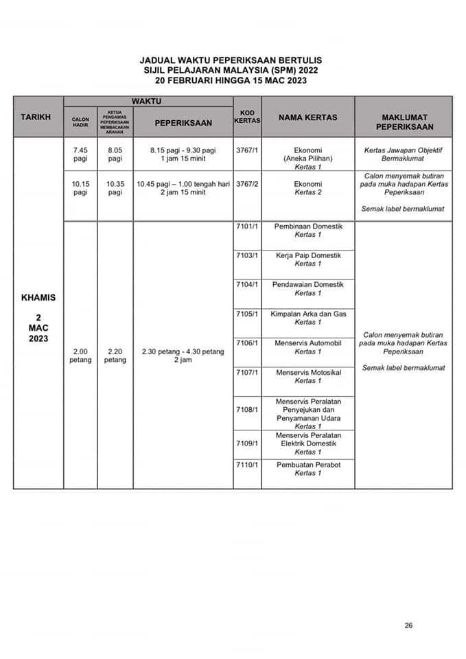 SPM正式考试时间表出炉 2022年12月31日2022年12月31日 T编 【#大马事】 #SPM #考试 #时间表 #正式 #出炉 教育部发布了SPM考试时间表。SPM考生们你们准备好了吗? 小编在这边提醒大家,为了我们莘莘学子在考试期间路过学校记得不要喧哗也不要鸣笛。 Post Views: 213