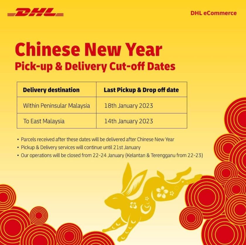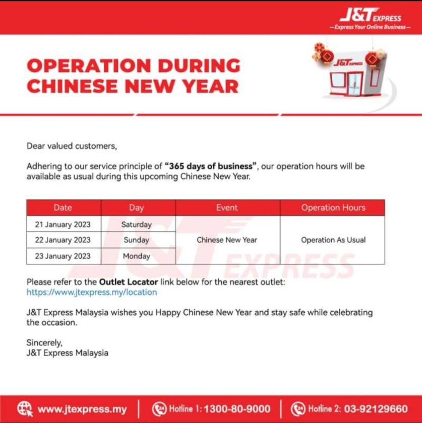 东马地区则是:Ninja Van 为15日(周日)、GDEX为16日(周一)、DHL为14日(周六)。不过, J&T则是全年无休,农历新年没有休息。